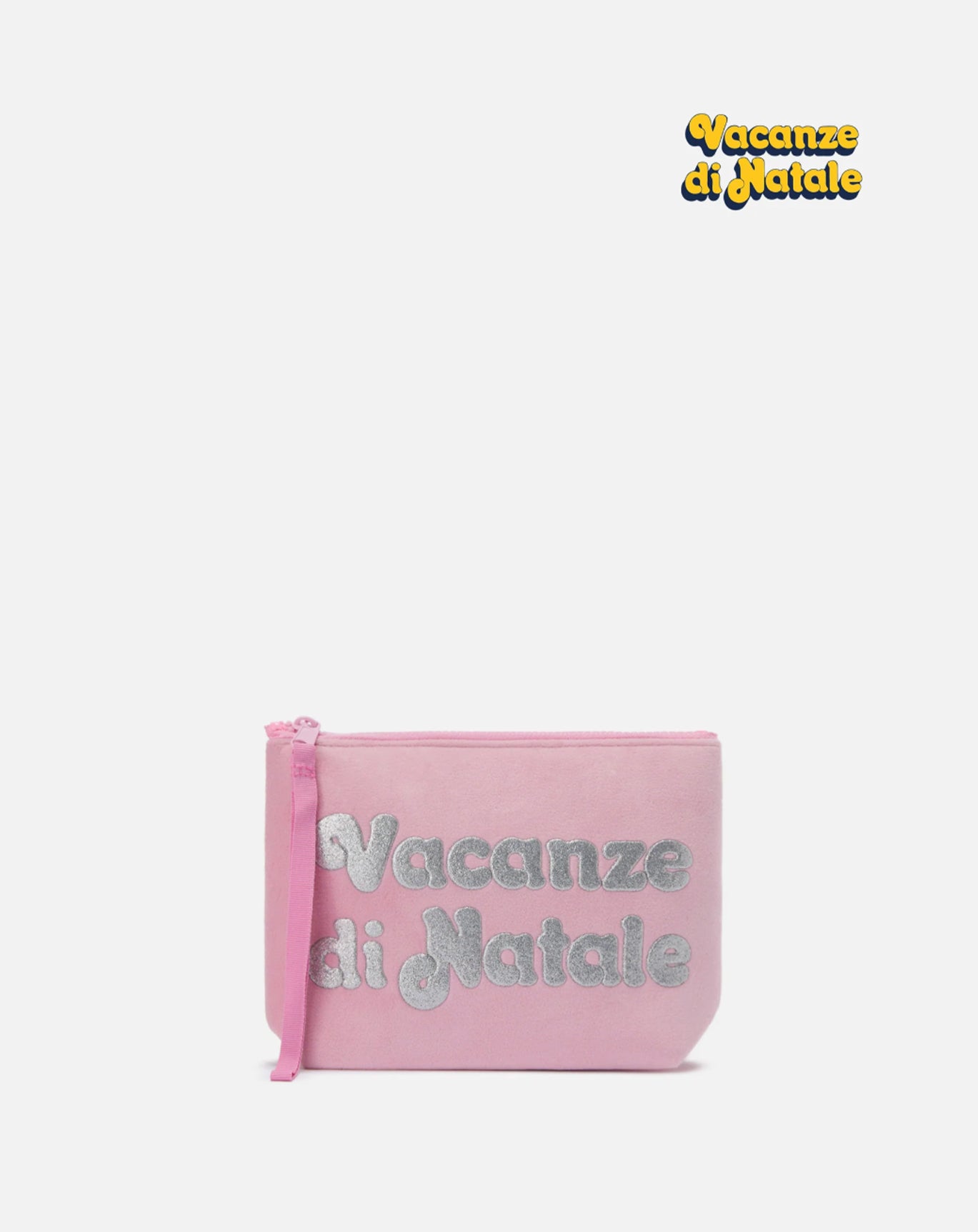 Pochette in tessuto scubaStampa Vacanze di NatalePassante per polso in gros-grainLogo stampatoDimensioni: 21 x 15,5 x 7 cm
