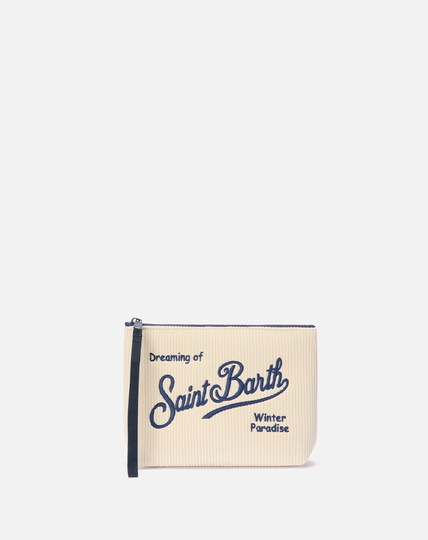 Retro-chic e contemporanea: velluto a coste beige per look rilassati ma cool.Pochette in tessuto scuba e velluto a costeTinta unita beigePassante per polso in gros-grainLogo ricamatoDimensioni: 21 x 15,5 x 7 cm