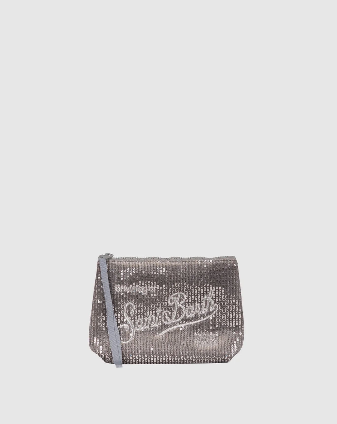 Brillante e glamour, la pochette "Dreaming of Saint Barth - Winter Paradise" di MC2 Saint Barth è l'accessorio perfetto per illuminare ogni look. Realizzata in tessuto interamente ricoperto di paillettes argentate, riflette la luce con eleganza e aggiunge un tocco festoso al tuo outfit. Dotata di chiusura con zip e comodo laccetto da polso, è ideale come mini clutch da sera o beauty da viaggio.Colore: ArgentoScritta frontale: "Dreaming of Saint Barth - Winter Paradise"Materiale: Tessuto con paillettesChiusura: Zip con laccetto lateraleDimensioni approssimative: 25 x 15 x 8 cmPerfetta per le feste o per dare un tocco di luce al tuo stile quotidiano.